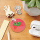 Fraises juteuses aux tiges vertes et feuilles sur un arrière - plan orange et rose ombragé. Un design fruité amusant.