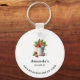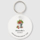 Un porte - clé avec une image estivale d'un bouquet de fraises débordant dans un seau.