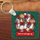 A funny dog choir on a Christmas themed keychain or key ring. Use "Personalize this template" to change the "Bark! the herald angels sing!" text and create a unique, customized stocking filler. Featuring six toy dog breeds singing carols, including a Dachshund, Yorkie, Bichon Frise, Chihuahua, a Pomeranian and a Pug. Each doggy choirboy is wearing traditional red and white robes and holding a hymn book and candle.
