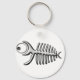 Classic Button Keychain with the funny image of a fishbone with aiming look and wide open mouth.