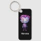 Porte - clé avec une jolie illustration. Monstre Frankenstein aux cheveux roses et violets et costume et cravate en dapper.