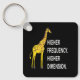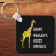 Funny Giraffe Pun porte - clé conçu par Nisha Prabhu. Mignonne girafe avec des mots de jeu ''Haute Fréquence. Dimension Supérieure.'' Débloquez un monde de rire avec ce porte - clé de jeu de girafes hilarant! Gardez vos clés organisées en style avec cet accessoire décalé qui vous apportera un sourire à chaque fois que vous les atteignez. Parfait pour ajouter une touche de fantaisie à votre routine quotidienne ou comme cadeau amusant pour vos amis amateurs de jeux de mots. Prenez un coup de bouchon chaque fois que vous attrapez vos clés avec ce porte - clé indispensable de Cutehomcadeaux Zazzle!
