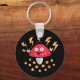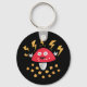 Un porte - clé en métal lourd avec un drôle de champignon de dessin animé faisant le signe à la main des cornes, des éclairs et des fleurs tout autour. Grand cadeau pour un fan de pop rock punk et une tête de métal avec un sens de l'humour.