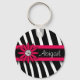 Porte-clés Gemme floral rose chaud et motif zèbre