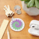 Make a bold statement with this striking geometric spiral design. Featuring layered, radiating spikes that draw the eye inward, the artwork blends soft gradients of purple and mint green against a dramatic black background. The result is a mesmerising, almost hypnotic effect that feels both modern and dynamic.