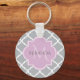 Un porte - clé de base à motif carré gris clair girly avec un badge à pétoncle dans une lavande rose que vous pouvez personnaliser en ajoutant votre nom et une initiale monogrammée à. Il fait partie de Harbour Mist Grey and Lavender Pink Spring Collection.