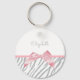 Un tigre gris branché raye un porte - clé motif simple agrémenté d'une photo d'un arc en satin rose ceint. Personnalisez en ajoutant le nom de votre fille préférée. Image imprimée plate, NON apposée avec un ruban réel.