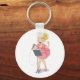 A girl singing with a microphone in a pink dress. Perfect design for that singer you know. This design looks really effective on these Keychain