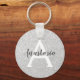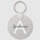 Girly and glam silver glitter sparkles monogram name and initial keychain. Personalize with your custom name in gray and your monogram initial in white. You can change the text color and font style and size using the customize option.