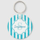 Porte-clés Girly Turquoise Peint Stripes Monogramme et nom