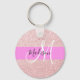 Fille et glam rose rose rose rose rose parties scintillant scintille blanc nom monogramme et porte - clé initial. Votre nom personnalisé et votre monogramme sont écrits dans un élégant script écrit à la main avec un arrière - plan rose. Un cadeau d'anniversaire ou de Noël parfait !