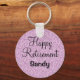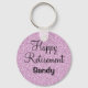 Glam personnalisé Happy Retirement porte - clé avec une parties scintillant violette brillant arrière - plan et élégante écriture noire. Vous pouvez facilement ajouter le nom de votre choix et changer la couleur et la police du nom en utilisant l'option personnaliser !