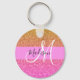 Girly and glam hot pink and orange, yellow, gold mermaid glitter sparkles gradient monogram name and initial keychain. Your custom name and monogram are written in an elegant hand lettered script with a pink background. A perfect birthday or Christmas gift!