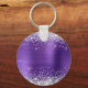 Elégante parties scintillant violette avec étincelles contre un faux améthyste brossé feuille de métal image graphique. Le chic monogramme de calligraphie blanc au centre peut être customisé. Tous les éléments brillants et brillants de ce design girly moderne sont des graphismes numériques. Un précieux cercle monogrammé forme porte - clé fête favorise pour sa fête d'anniversaire spéciale.