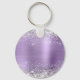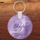 Elégante parties scintillant violette avec étincelles contre une image graphique en feuille de métal brossé violet clair. On peut customiser le chic monogramme de calligraphie royale violet et blanc au centre. Tous les éléments brillants et brillants de ce design girly moderne sont des graphismes numériques. Un précieux cercle monogrammé forme porte - clé fête favorise pour sa fête d'anniversaire spéciale.