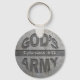 Proudly declare your faith and proclaim your position in GOD'S ARMY with this cool keychain! Design shows a grunge metal gray background with a faux engraved effect on the words.