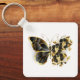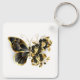 Or flower butterfly with black jewelry orchid, decorated with gold leaves on white background.