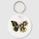 Or flower butterfly with black jewelry orchid, decorated with gold leaves on white background.
