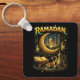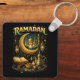 An ornate and luminous Ramadan scene glows with crescent moons, lanterns, sacred texts, and quiet devotion beneath a star-filled sky.