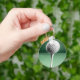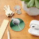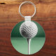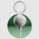 Une balle de golf blanche sur un tee blanc devant un arrière - plan vert.