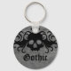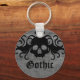 Porte - clé mignon avec un crâne de vampire noir avec des crocs et des ailes tourbillonnant avec un coeur sur le dessus d'un fond gris grinçant. Le texte dit "gothique" mais vous pouvez facilement changer cela en votre nom.