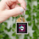 Super mignon punk goth doux 16 carré premium porte - clé partie faveur avec un arrière - plan noir et fuchsia et un crâne avec un arc bleu dessus. Ajoutez un nom ou un autre texte.