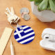 Drapeau de la Grèce. Le drapeau de la Grèce (communément appelé "bleu-blanc ciel" ou "bleu-blanc" et en grec : "Γ α ν λ λ " ou " "), officiellement reconnu par la Grèce comme l'un de ses symboles nationaux, est basé sur neuf bandes horizontales égales de bleu alternant avec blanc. Il y a un canton bleu dans l'angle supérieur du côté du treuil, portant une croix blanche ; la croix symbolise le christianisme orthodoxe oriental, la religion établie des Grecs de Grèce et de Chypre. Selon la tradition populaire, les neuf syllabes représentent les neuf syllabes de l'expression Ε λ θ υ , les cinq singes bleus pour les syllabes " " et les quatre bandes blanches "Liberté ou Mort", les cinq singes bleus pour les syllabes " " et les blanches " ". Les neuf bandes représentent également les lettres du mot "liberté" (Ε λ sont θ ). Il y a aussi une théorie différente, que les neuf bandes symbolisent les neuf Muses, déesses de l'art et de la civilisation.