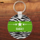 Porte - clé moderne et tendance Sassy Star Zebra avec un arrière - plan design en zèbre noir et blanc et une bordure verte chartreuse ornée d'un motif étoilé amusant. Ce design girly peut être customisé avec le texte personnalisé de votre choix. Cliquez sur "Customiser" pour trouver d'autres options de personnalisation.