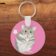 This lovely button key chain, zip pull, features a cute fluffy Grey and white Hamster holding a flower against a bright pink background. A lovely gift or stocking filler.