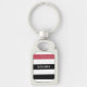 Personnalisez ce porte - clé de charme graphique à large bande blanche et noire motif avec une bande design de style parties scintillant rouge brillant en ajoutant le nom de n'importe quelle fillette. Ce motif à rayures graphiques tendance est parfait pour le fashionista chic. Image imprimée plate, PAS de parties scintillant réelle.