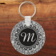 Porte-clés Hand Drawn Black and White Flower Pattern Monogram