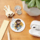 Porte-clés Harry et Hedwig en cartoon volant devant Poudlard