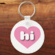 Ce porte - clé est doté d'un coeur rose vif contenant les lettres coques inférieures arrondies, blanches et audacieuses, une abréviation ludique pour Hawaii, l'état d'aloha.