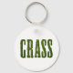 Porte - clé avec le mot GRASS. Le texte est fait d'une photo d'herbe pour lui donner l'air d'être coupé de terre. Belle conception pour les entreprises de tondeuse ou d'entretien de pelouse.