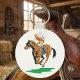 A jockey and a race horse out for a gallop. This design looks really effective on this Keychain