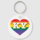 Ce porte - clé a un coeur avec un motif de fierté arc-en-ciel et les lettres KY. Au-dessus des rayures, dans le coeur se trouvent les lettres majuscules, en gras, blanches, KY, l'abréviation officielle du Kentucky, l'état de la pelouse bleue. Montrez vos vraies couleurs, soutenez l'égalité dans le mariage et célébrez le gay pride.