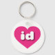 Ce porte - clé est doté d'un coeur rose chaud et vibrant contenant l'ID de lettres coques inférieures, gras, blanches et arrondies, une abréviation ludique pour Idaho, l'état de la gemme.