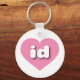 Ce porte - clé est doté d'un coeur rose vif qui contient l'ID en lettres coques inférieures arrondies et audacieuses, une abréviation ludique pour Idaho, l'état de la gemme.