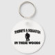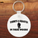 Citation drôle tristement célèbre, "There’s A Squatch In These Woods", en utilisant le surnom abrégé Bigfoot, le tout en simple lettrage noir avec une silhouette Sasquatch entre l’expression.