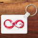 Infinity symbole of continuous stream of red pouring into glass glass glass on white background.