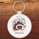 Un porte - clé rustique au design rustique rouge et marron avec deux mignons inséparables d'art populaire dans un nid en forme de coeur comme cadre. Personnalisez en ajoutant votre nom.