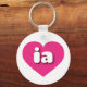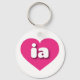 Ce porte - clé est doté d'un coeur rose chaud et vibrant contenant les lettres coques inférieures, pleines de blanc et arrondies, ia, une abréviation ludique de l'état de l'Iowa, l'état de l'oeil faucon.
