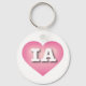 Ce porte - clé présente un coeur rose collé et calme, avec un centre lavé blanc contenant les lettres coques supérieures IA, gras, blanc, l'abréviation officielle de Iowa, l'état de l'oeil faucon.