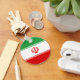 Drapeau de l'Iran. Le drapeau actuel de l'Iran (Perse : پ livre littéraire, littéraire, littéraire , parcam et irân) a été adopté le 29 juillet 1980, et reflète les changements apportés par la Révolution iranienne. Son champ est un tricolore comprenant des bandes horizontales égales de vert, blanc et rouge. L'emblème rouge au centre du drapeau, conçu par Hamid Nadimi, est un composite très stylisé de divers éléments islamiques : une forme géométriquement symétrique du mot Allah ("Dieu") et des parties recouvrant la phrase lā ʾilāha ʾillà l-Lāh ("Il n'y a pas d'autre dieu que Dieu"), formant un monogramme sous forme de tulipe. Écrit en blanc sur les bords intérieurs des bandes vertes et rouges est la phrase répétée Allahu Akbar ("Dieu est grand") dans une version stylisée du script kufique utilisé pour le Coran. Cette écriture rend le drapeau non réversible.