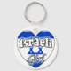 Beau porte-clé avec un coeur représenté par le drapeau israélien. Le texte indique: Israeli girl L'arrière-plan est de couleur blanche. C'est sympa de donner comme cadeau ou comme cadeau pour vous-même de montrer que vous êtes fier d'être Israélien, des couleurs : bleu et blanc.