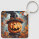 Le Jack-o'-lantern festif portant un casquette sorcier fera des feuilles d'automne colorées tout autour.