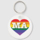 Ce porte - clé est doté d'un coeur avec un motif de rayures arc-en-ciel et les lettres majuscules en gras, blanches, MA, l'abréviation officielle pour Massachusetts, l'état de la baie. Montrez vos vraies couleurs, soutenez l'égalité dans le mariage et célébrez le gay pride.