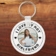 Porte - clé personnalisé avec "I Love my Hot Girlfriend" texte personnalisé et design photo. Les couleurs et les polices peuvent être modifiées avec l'outil de conception. Le design moderne et simple est parfait pour une façon plus minimaliste et sous-estimée de porter une photo de votre petite amie pour la Saint-Valentin, un anniversaire, anniversaire, une date romantique, une proposition de fiançailles ou un cadeau de départ avant le voyage, l'école, ou un nouvel emploi.