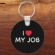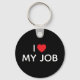 La typographie rouge "I HEART MY JOB" sur un porte - clé rond. Vous pouvez modifier les couleurs du texte blanc et la forme du coeur rouge vif. L'arrière - plan présente une couleur noire et solide minimaliste qui peut également être changée.