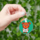 porte - clé vert compact et adorable avec un chien robot brun triste dans une situation humoristique. Le chien métallique futuriste est montré assis avec une expression de sourd, tenant une petite pancarte qui dit : "Je ne suis pas un robot", alors qu'il lutte avec une invite CAPTCHA d'un site web